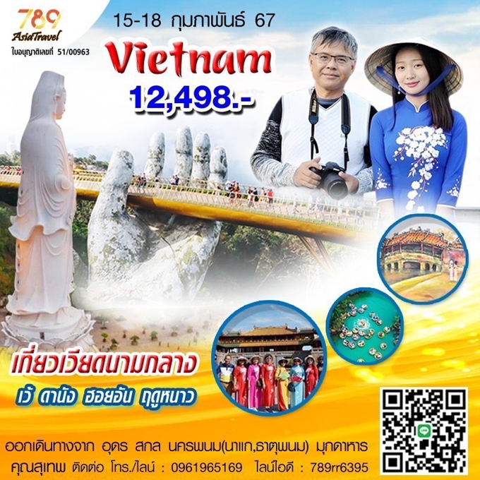 เวียดนามกลางทางรถ เว้ ดานัง ฮอยอัน 4 วัน 3 คืนเพลิดเพลินกับบาน่าฮิลล์ พักโรงแรม 4 ดาวตลอดทริป เดินทางวันที่ 15- 18 กุมภาพันธ์ โดย....789 รุ่งเรืองทัวร์